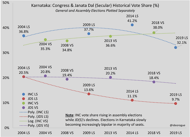 | Swarajya - Congress & JDS Vote Share (Graph 1) |