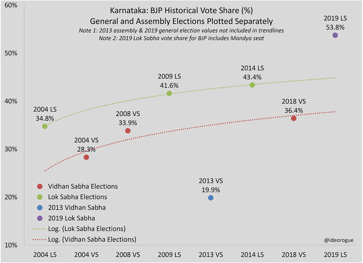 The first graph is of the congress-JDS vote share and second graph is of BJPs vote share.